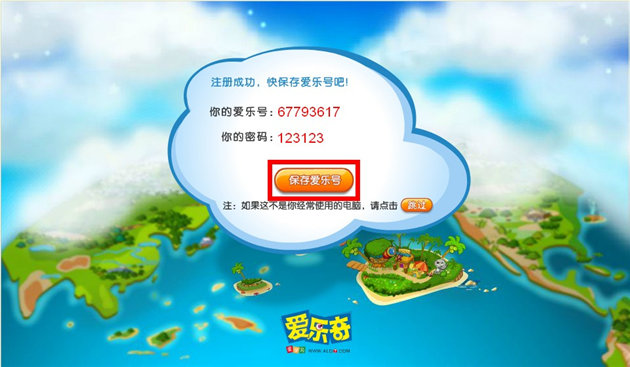 一定要记住自己的爱乐号和密码哦!点击“保存爱乐号”,在电脑桌面创建TXT文档,保存爱乐号和密码,然后进入下一步。