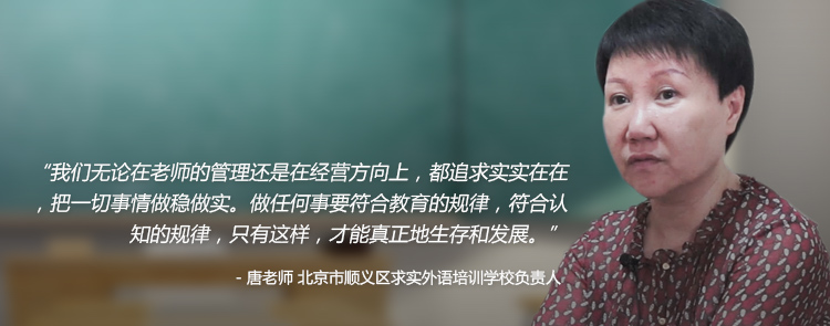 如此决定,看似仓促,其实源于求实一直以来对教学品质的追求和对高新技术的关注。“莫忘初心,方得始终。学校有行业赋予它的特殊属性。一个学校既要教书也要育人,才算对得起‘学校’这个名称。”北京顺义区求实外语培训学校的唐老师言语里透露着对教育的敬畏与责任。